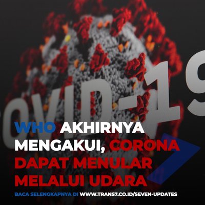 Setelah sebelumnya sebanyak 239 ilmuan di 32 negara menyatakan virus corona bisa menular lewat udara, WHO pun akhirnya telah mengonfirmasi ungkapan tersebut nih Sobat7! Baca selengkapnya di https://t.co/08zts4HjzW #TRANS7Update #Sobat7JadiTau https://t.co/Mq3WrXlAjBNET.